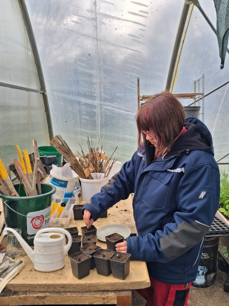 Heute war es soweit: Sie sind groß genug geworden, um ihren nächsten Lebensraum zu beziehen. Mit achtsamen Händen wurden sie nach draußen und ins Gewächshaus gebracht, wo sie nun weiter wachsen, sich entfalten und verwurzeln dürfen. Im Rhythmus der Natur und begleitet von gemeinsamer Arbeit und Freude.