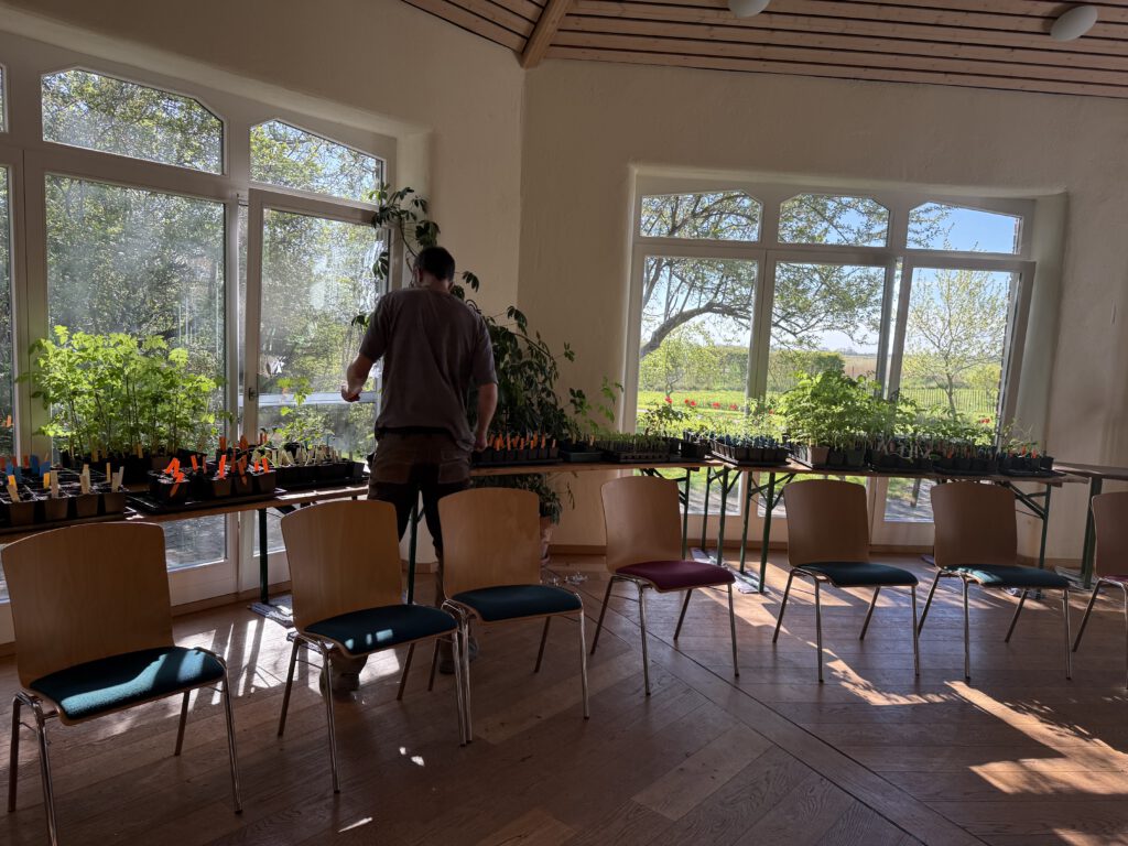 Im Rahmen des Werkstattbereichs der ökologischen Landwirtschaft durften in den vergangenen Wochen viele kleine Pflänzchen im großen, lichtdurchfluteten Saal unseres Wohnbereichs heranwachsen. Behütet von Wärme und Aufmerksamkeit entwickelten sie sich Schritt für Schritt zu kräftigen jungen Pflanzen.