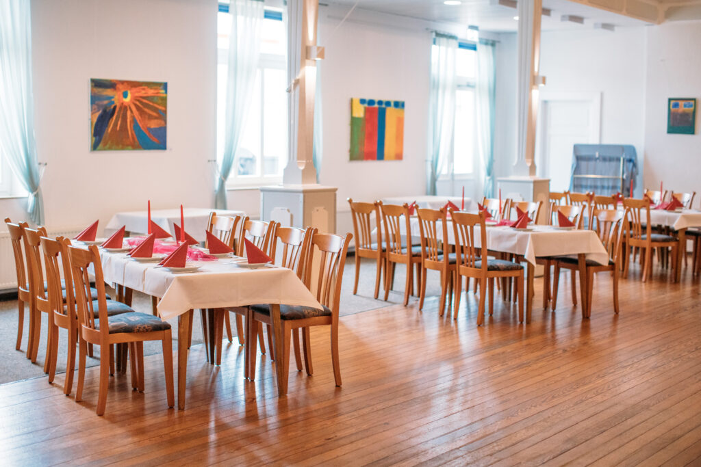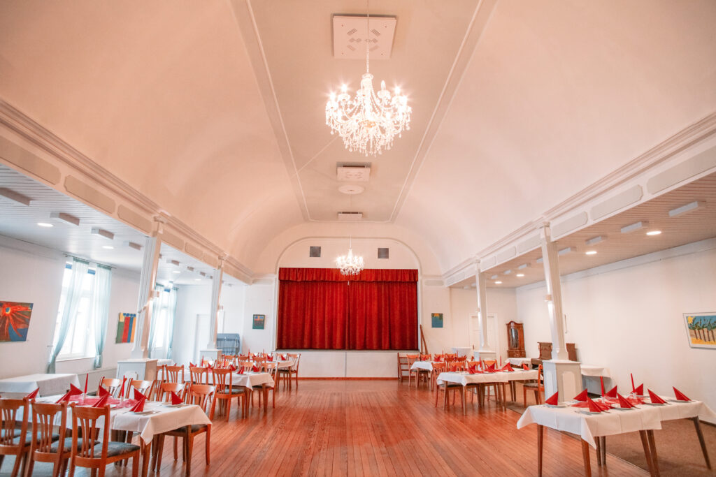 Ob Hochzeit, Geburtstag oder ein anderer besonderer Anlass, hier ist Raum zum Feiern, Begegnen und Genießen. Mit viel Platz zum Tanzen und einer Bühne für Musik, Ansprachen oder kleine Aufführungen lässt sich jedes Fest ganz individuell gestalten.