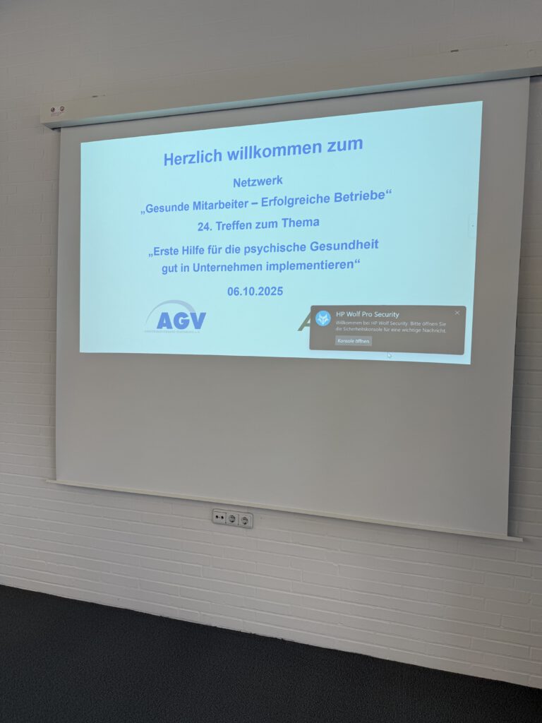 Am 6. Oktober durften wir an der Veranstaltung „Erste Hilfe für die psychische Gesundheit gut in Unternehmen implementieren“ teilnehmen. Eingeladen hatten der Arbeitgeberverband Oldenburg (AGV) und die AOK Niedersachsen – zwei starke Partner, wenn es um zukunftsorientiertes betriebliches Gesundheitsmanagement geht.