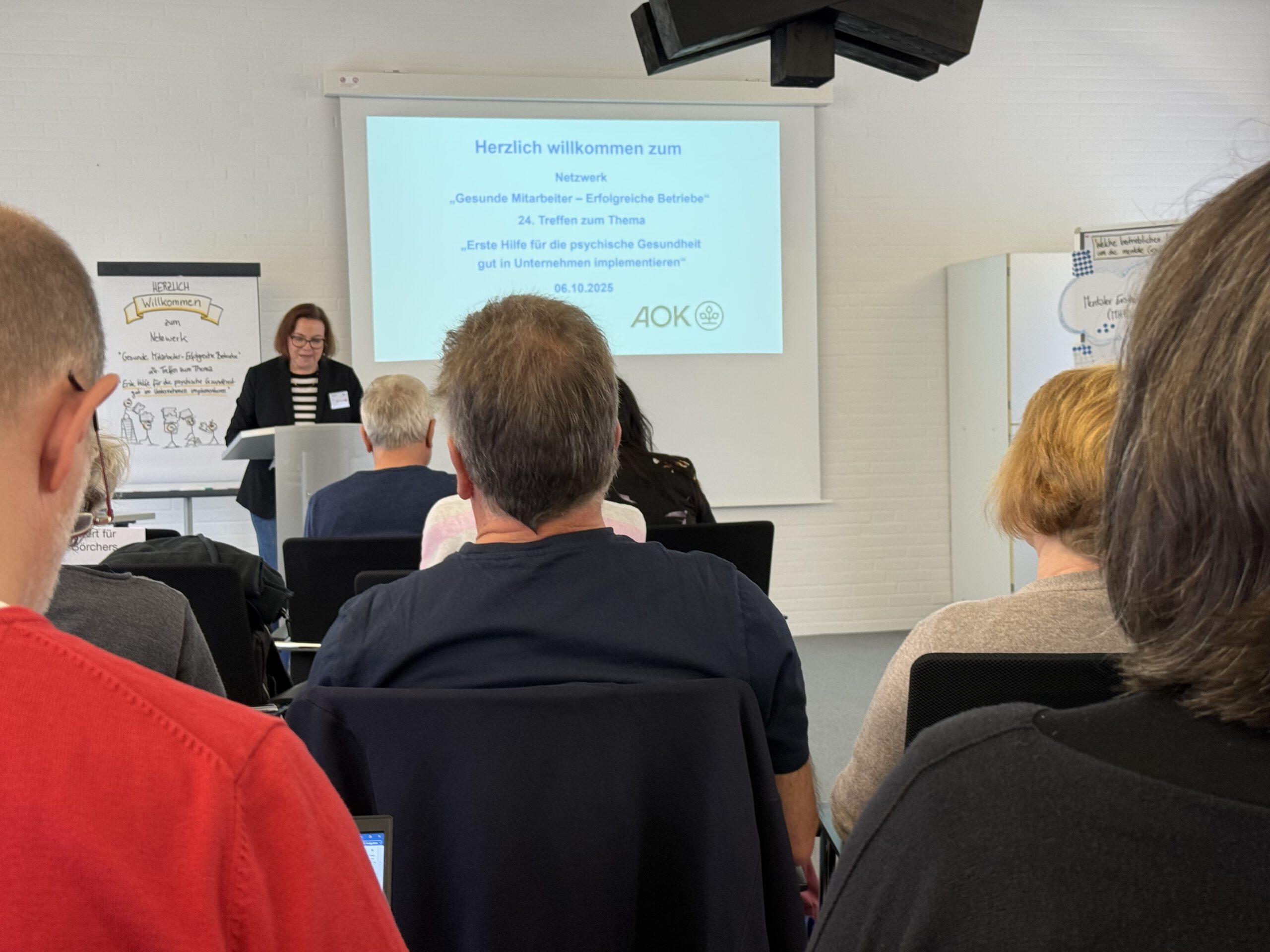 Am 6. Oktober durften wir an der Veranstaltung „Erste Hilfe für die psychische Gesundheit gut in Unternehmen implementieren“ teilnehmen. Eingeladen hatten der Arbeitgeberverband Oldenburg (AGV) und die AOK Niedersachsen – zwei starke Partner, wenn es um zukunftsorientiertes betriebliches Gesundheitsmanagement geht.